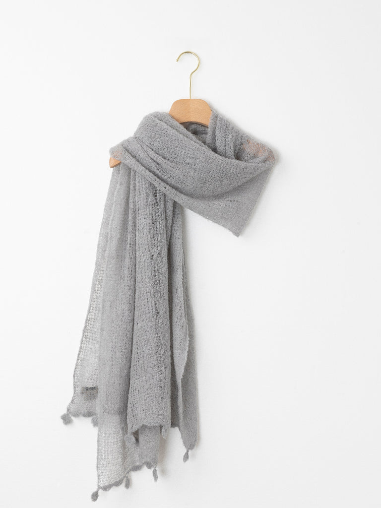 The Estrella Shawl is woven from 100% baby alpaca and finished with a softly brushed texture that feels like a warm breeze against the skin. Large enough to wear as a wrap, scarf or travel layer, it offers weightless warmth and understated elegance in every season.