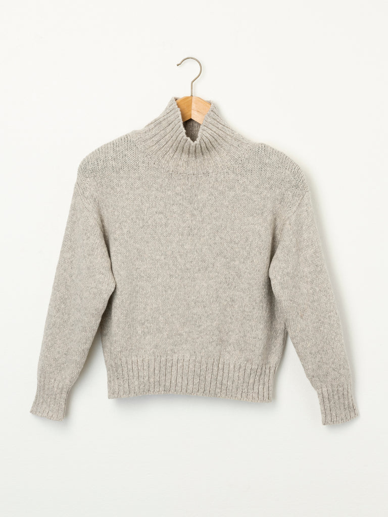 Crafted from an eco-friendly blend of baby alpaca and organic Pima cotton, this high-neck jumper is soft, breathable and beautifully lightweight. The yarn is completely undyed, showcasing the natural melange tones of alpaca fleece – making each piece gentle on the planet and unique in character.