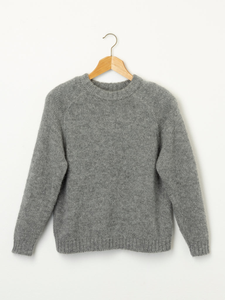 The Suri Alpaca Crew Neck Knit is crafted from a luxurious blend of Suri alpaca, merino wool and recycled fibres, giving it an exceptionally soft, silky handle and an airy lightweight feel. The brushed finish creates a subtle fuzzy texture that feels gentle against the skin, while the raglan sleeve design offers a relaxed, flattering fit.